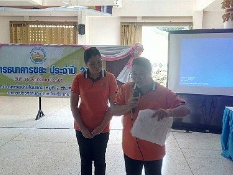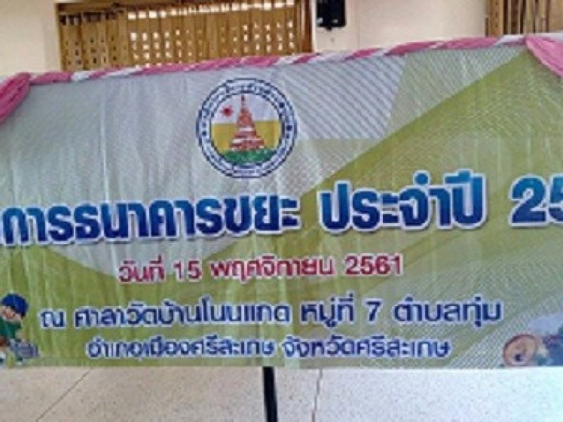 อบรมโครงการธนาคารขยะ ประจำปี 2561 วันที่ 15 พฤศจิกายน 2561 ณ ศาลาวัดบ้านโนนแกด หมู่ที่ 7