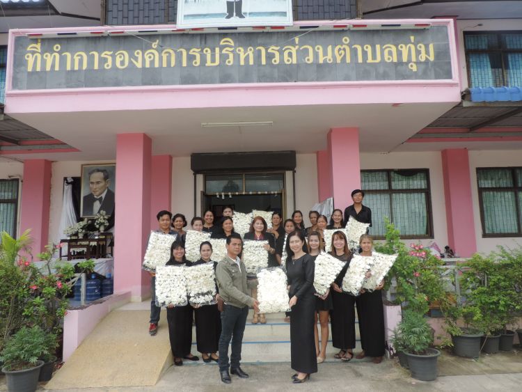 รพ.สต.บ้านโนนแกดพร้อมทีมงาน อสม. และกลุ่มแม่บ้านตำบลทุ่ม มอบ ดอกไม้จันทน์พระราชทาน จำนวน 1,500 ดอก ณ องค์การบริหารส่วนตำบลทุ่ม วันที่ 13 กรกฎาคม 2560 [13 สิงหาคม 2560]