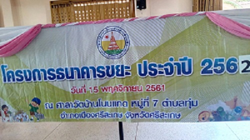 รับสมัครสมาชิกตามโครงการธนาคารขยะบ้านโนนแกด หมู่ที่ 7 ตำบลทุ่ม อำเภอเมืองศรีสะเกษ จังหวัดศรีสะเกษ [22 ตุลาคม 2561]