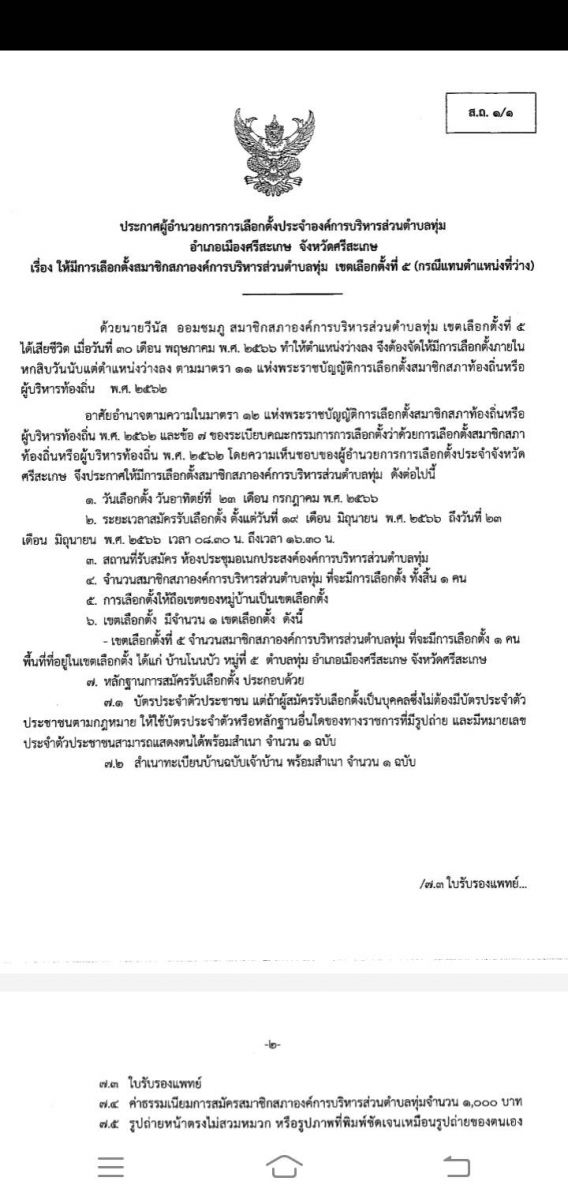 ประกาศผุ้อำนวยการเลือกตั้งให้มีการเลือกตั้งสมาชิกสภาองค์การบริหารส่วนตำบลทุ่ม เขตเลือกตั้งที่ 5