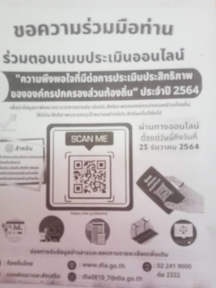 ขอความร่วมมือตอบแบบประเมินความพึงพอใจที่มี่ต่อการประเมินประสิทธิภาพขององค์กรปกครองส่วนท้องถิ่น