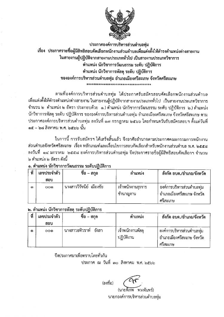 อำเภอเมืองศรีสะเกษ จังหวัดศรีสะเกษ