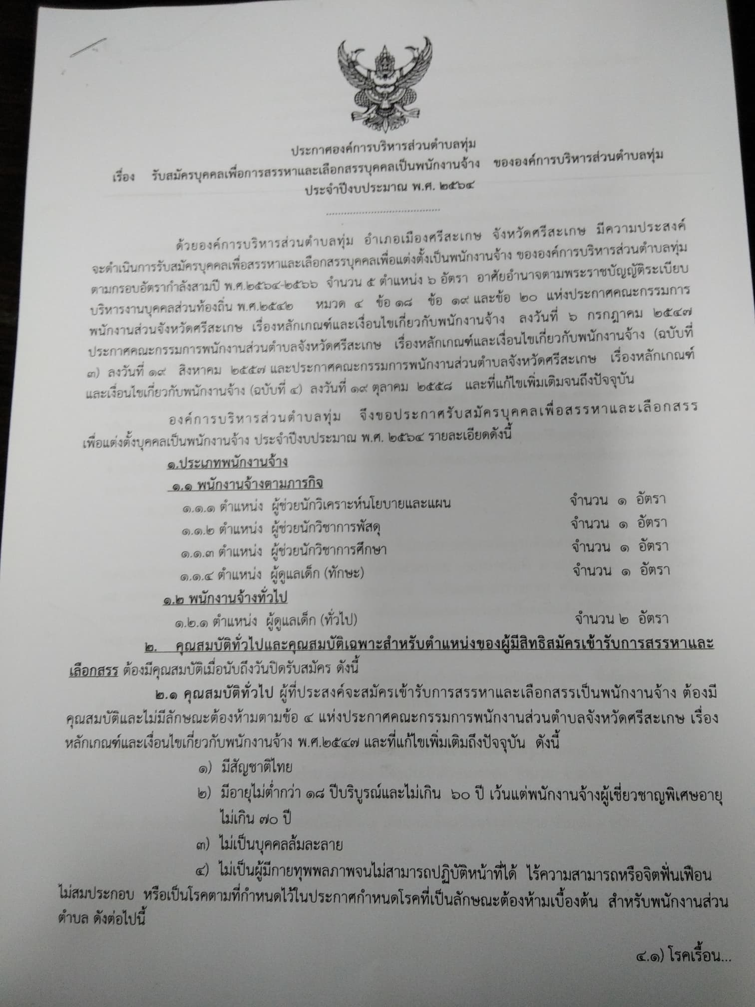 ชื่อเรื่อง : รับสมัครบุคคลเพื่อการสรรหาและเลือกสรรบุคคลเป็นพนักงานจ้าง ขององค์การบริหารส่วนตำบลทุ่ม ประจำปีงบประมาณ พ.ศ. 2564