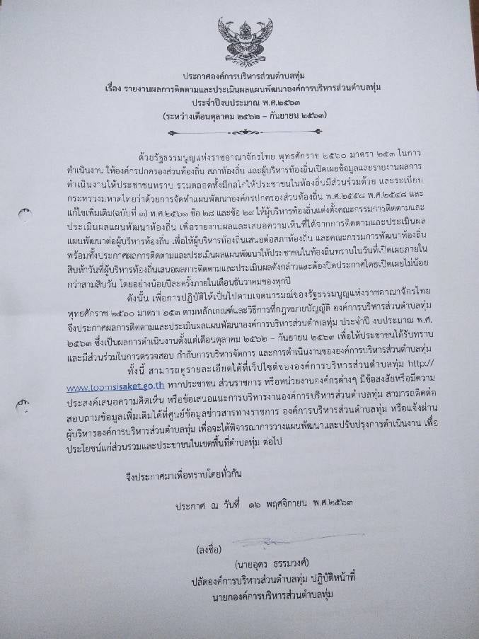 ชื่อเรื่อง : การรายงานผลการติดตามและประเมินผลแผนพัฒนาองค์การบริหารส่วนตำบลทุ่ม 2563