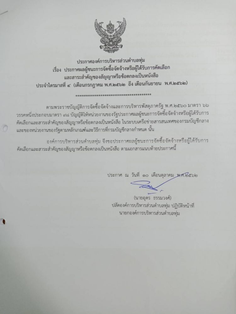 ชื่อเรื่อง : ประกาศผลผู้ชนะการจัดซื้อจัดจ้าง ประจำไตรมาสที่ 4 (กรกฎาคม 2562 -กันยายน 2562