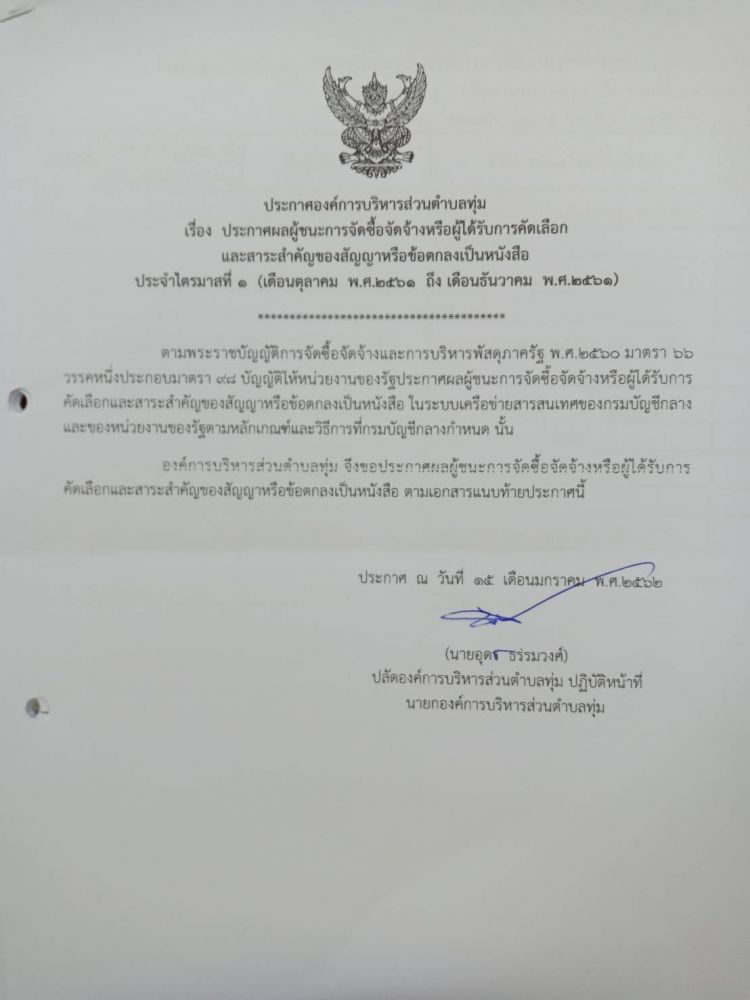 ชื่อเรื่อง : ประกาศผลผู้ชนะการจัดซื้อจัดจ้าง ประจำไตรมาสที่ 1 (ตุลาคม 2561- ธันวาคม 2561)