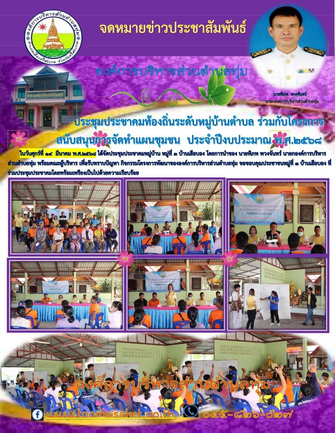 จดหมายข่าวประชาสัมพันธ์ ประชุมประชาคมท้องถิ่นระดับหมู่บ้านตำบล ร่วมกับโครงการสนับสนุนการจัดทำแผนชุมชน ประจำปีงบประมาณ พ.ศ. 2568