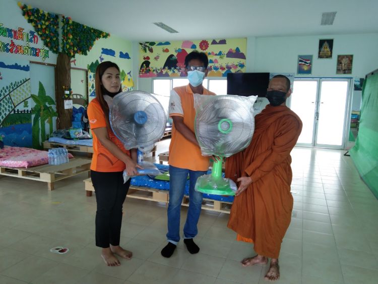 พระอนันต์ วัดบ้านหางว่าว หมู่ที่ 4 ตำบลทุ่ม อำเภอเมืองศรีสะเกษ จังหวัดศรีสะเกษ มอบพัดลม จำนวน 2 เครื่อง ให้กับศูนย์พักคอยตำบลทุ่ม