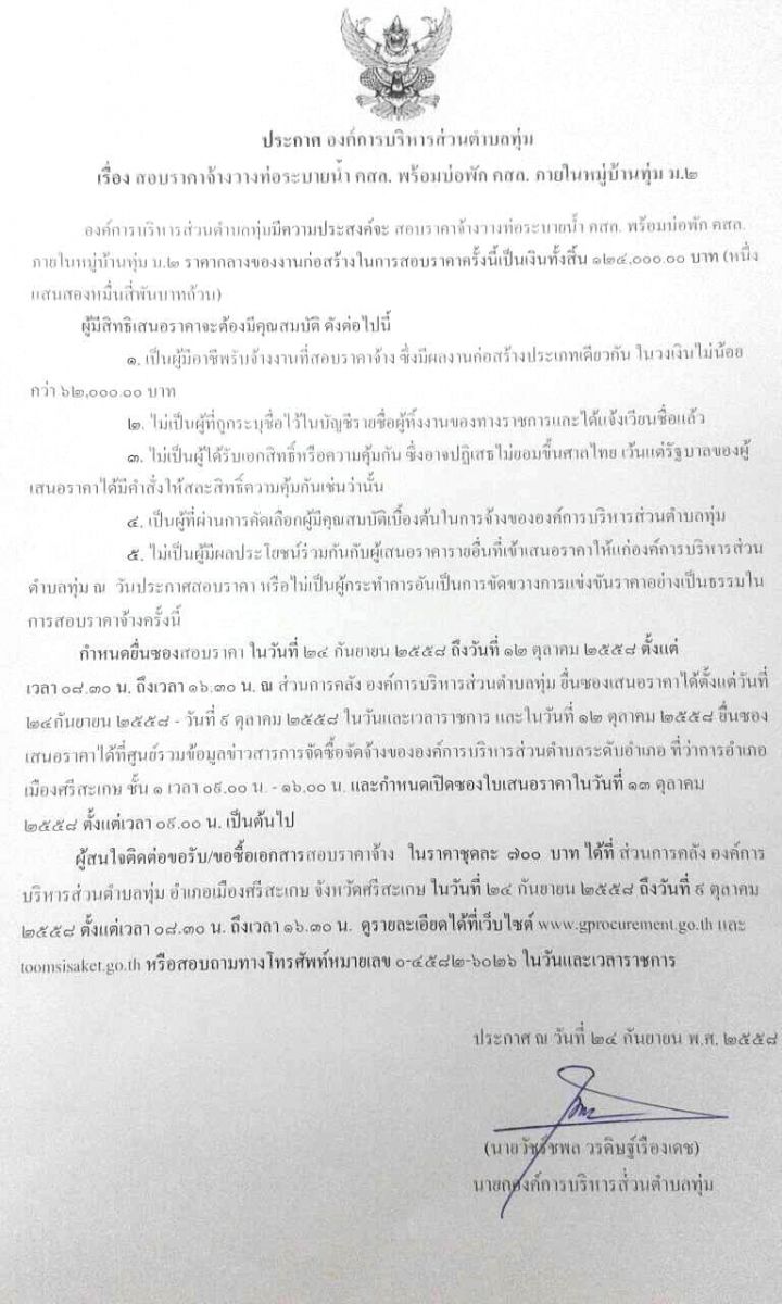 ชื่อเรื่อง : สอบราคาจ้างวางท่อระบายน้ำ คสล.พร้อมบ่อพัก คสล.ภายในหมู่บ้านทุ่ม ม.2